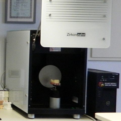 Rilevata l’impronta, realizzato il gesso preciso, viene digitalizzato con lo scanner 3D e fresato il blocco di zirconio riducendo al minimo assoluto gli errori.